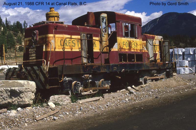 Notes : Built by CLC (1/1958). Sold to Crestbrook Forest Products (9/23/1968), renumbered to Crestbrook Forest Products #14, then to Crestbrook Forest Industries #14, serving in Canal Flats, B.C. On static display at Fort Steele Heritage Park, Fort Steele, B.C. Scrapped (2010). ___________________________________________________________________________________________