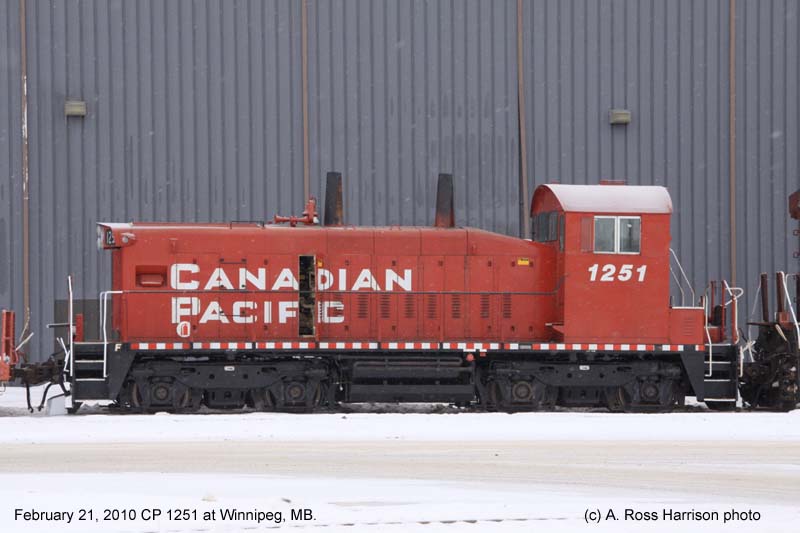 Notes : Built by GMD as SW1200RS #8164 (1960). Rebuilt by CP as SW1200RSu and renumbered to #1251 (1984). Retired (8/1/2012). Sold to NRE, Silvis IL. ___________________________________________________________________________________________