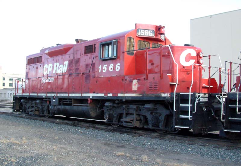 Notes : Built by GMD as GP9 #8491 (1954). Rebuilt by CP as GP9u, chop-nosed and renumbered to #1566 (1983). Retired (9/2011). Sent to SRY, New Westminster B.C., for parts salvage and scrapping. ___________________________________________________________________________________________