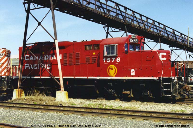 Notes : Built by GMD as GP9 #8633 (1956). Rebuilt by CP as GP9u, chop-nosed and renumbered to #1576 (1984). Retired (4/27/2009). Sold to RB Recycling, Lachine QC. (9/2010). ___________________________________________________________________________________________
