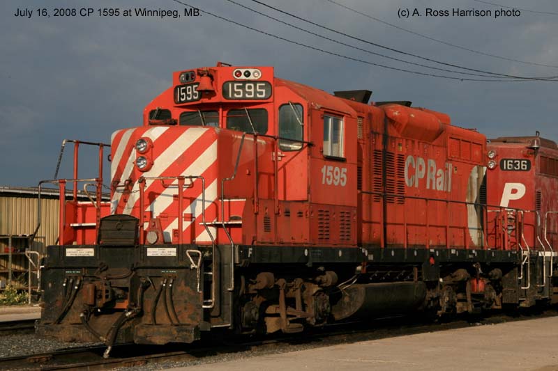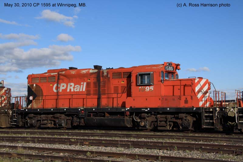 Notes : Built by GMD as GP9 #8699 (1957). Rebuilt by CP as GP9u, chop-nosed and renumbered to #1595 (1985). Retired (4/27/2009). Sold to RB Recycling, Lachine QC. (9/2010). ___________________________________________________________________________________________