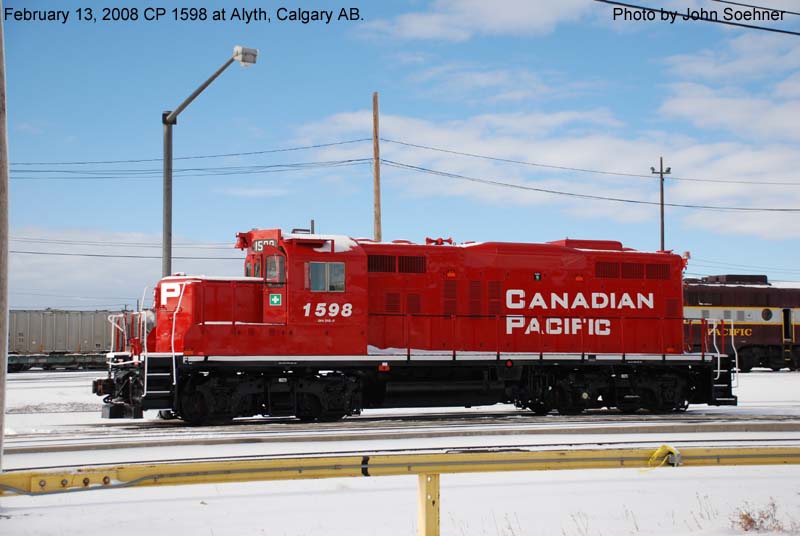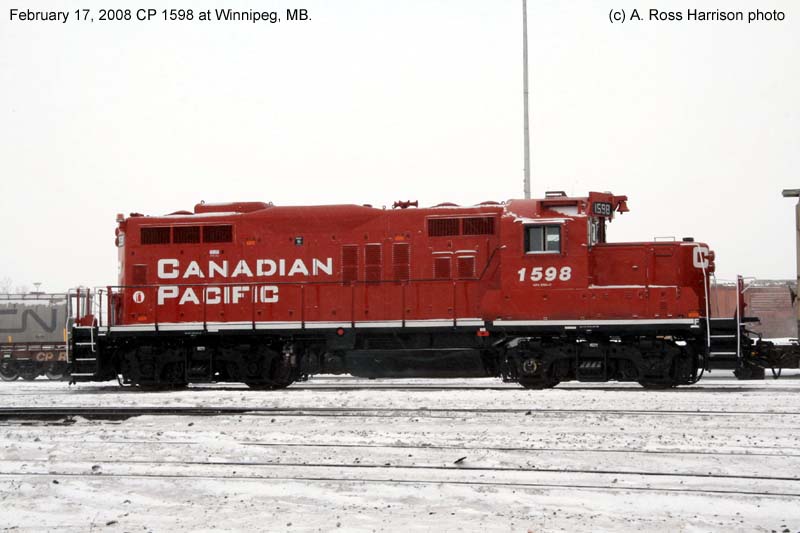 Other Photos (chronological) : 1. CP 8803 at Port Coquitlam, B.C., painted in the CP Rail Large Multimark paint scheme. Photo by Claude Prutton, 1976; 2. CP 1598 at Toronto, ON., painted in the CP Rail Small Multimark paint scheme. Photo by Bill Sanderson, 1991; 3. CP 1598 at Alyth, Calgary AB., painted in the Canadian Pacific paint scheme. Photo by John Soehner, 2008; 4. CP 1598 at Winnipeg, MB., painted in the Canadian Pacific paint scheme. Photo by A. Ross Harrison, 2008.