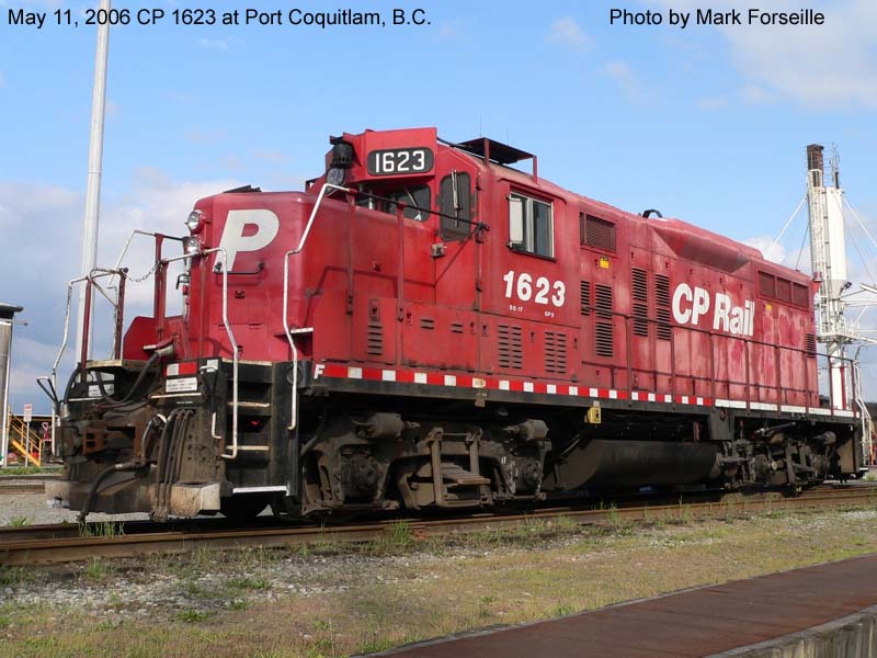 Notes : Built by GMD as GP9 #8525 (1955). Rebuilt by CP as GP9u, chop-nosed and renumbered to #1623 (1986). Equipped with CANAC remote control 'beltpack' equipment. Retired. ___________________________________________________________________________________________