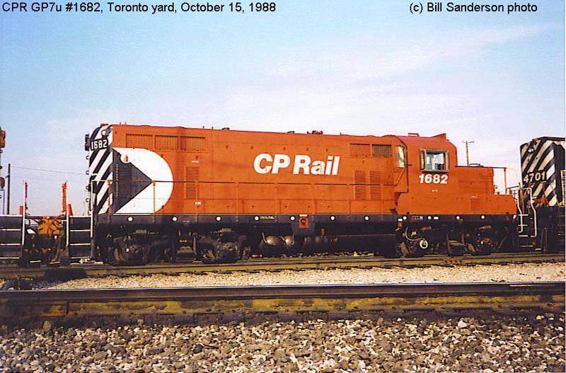 * : Originally built as a GP7, this unit received a 1,750 Hp.16-567C engine replacing the original 1,500 Hp. 16-567B engine when overhauled and renumbered to #1682, technically making it a GP9u unit. CP retains the GP7u designation for the ex-TH&B units numbered in the #1682-1687 group. ___________________________________________________________________________________________