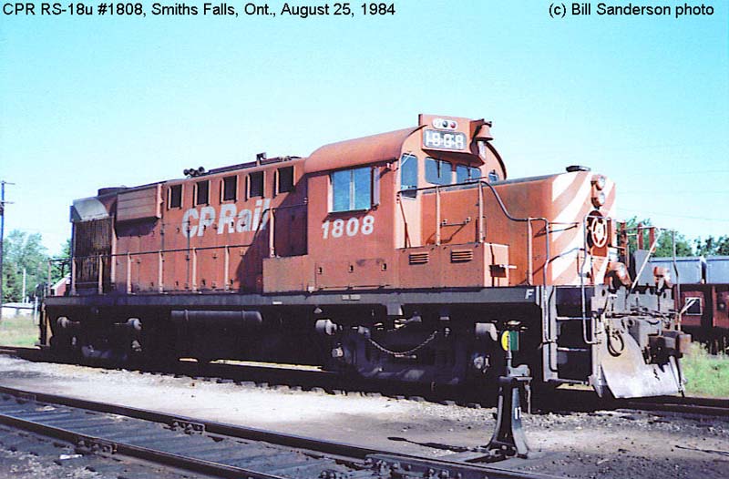 Notes : Built by MLW as RS-18 #8730 (1957). Rebuilt by CP as RS18u, chop-nosed and renumbered to #1808 (1981). Retired (10/29/1996). Sold to American Iron, Riviere-des-Prairies, QC. for scrap (8/1997). ___________________________________________________________________________________________