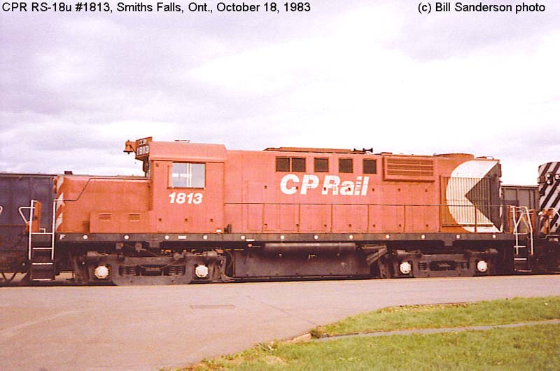 Other Photos (chronological) : 1. CP 8756 at Montreal, QC., painted in the Maroon & Grey "Script" paint scheme. Photo by Jean Patenaude, 1973. From the Bill Sanderson collection; 2. CP 1813 at Smiths Falls, ON., painted in the CP Rail Large Multimark paint scheme. Photo by Bill Sanderson, 1983.