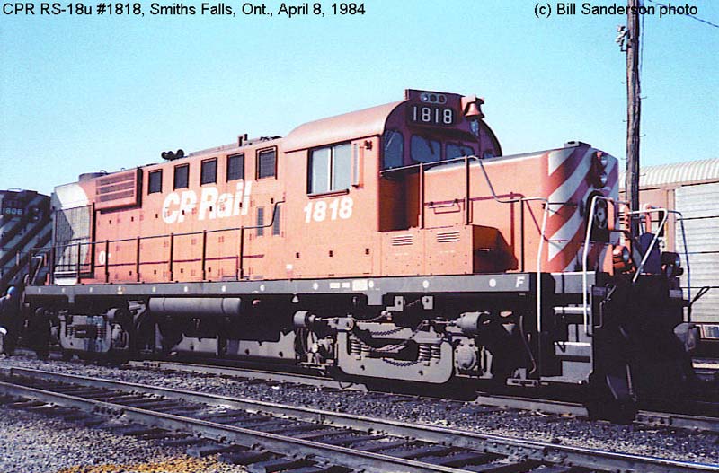 Other Photos (chronological) : 1. CP 8735 at Montreal, QC., painted in the CP Rail Large Multimark paint scheme. Photo by Jean Patenaude, 1974. From the Bill Sanderson collection; 2. CP 1818 at Smiths Falls, ON., painted in the CP Rail Large Multimark paint scheme. Photo by Bill Sanderson, 1984.