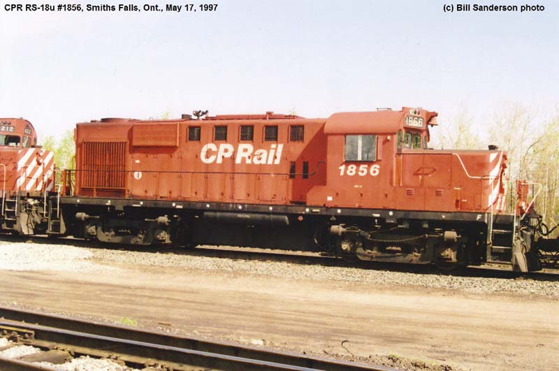 Other Photos (chronological) : 1. CP 8798 at Smiths Falls, ON., painted in the CP Rail Large Multimark paint scheme. Photo by Bill Sanderson, 1984; 2. CP 1856 at Smiths Falls, ON., painted in the CP Rail no-Multimark paint scheme. Photo by Bill Sanderson, 1997.