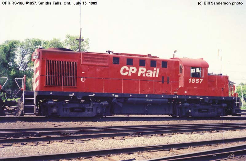 Other Photos (chronological) : 1. CP 8766 at Fredericton, NB., painted in the CP Rail Large Multimark paint scheme. Photo from the E.D. Motis collection, 1983; 2. CP 1857 at Smiths Falls, ON., painted in the CP Rail no-Multimark paint scheme. Photo by Bill Sanderson, 1989; 3. NBEC 1857 at Campbelllton, NB., painted for New Brunswick East Coast Railway. Photo by David T. Stowe, 1998. From the Bill Sanderson collection.