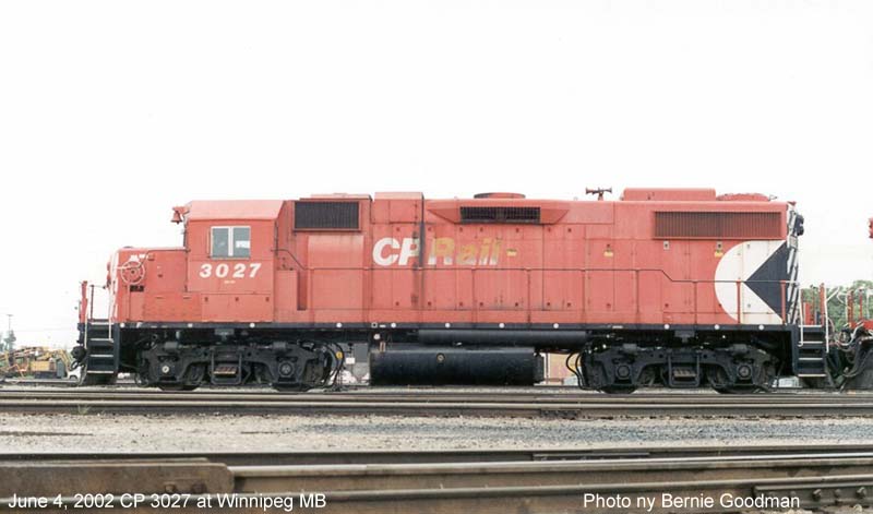 Other Photos (chronological) : 1. CP 3027 at Winnipeg, MB., painted in the CP Rail Small Multimark paint scheme. Photo by Bernie Goodman, 2002; 2. CP 3027 at Winnipeg, MB., painted in the CPR Beaver paint scheme. Photo by A. Ross Harrison, 2008.