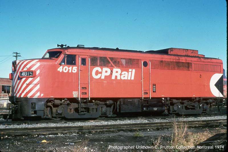 Built by : MLW Built in : 1950 Serial Number : 77310 Class : DFA-15b Paint Scheme : CP Rail Small Multimark This Photo : Claude Prutton collection, 1974