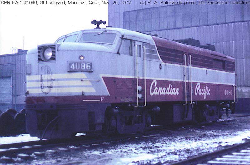 Other Photos (chronological) : 1. CP 4086 at Montreal, QC., painted in the Maroon & Grey "Script" paint scheme. Photo by P.A. Patenaude, 1972. From the Bill Sanderson collection.