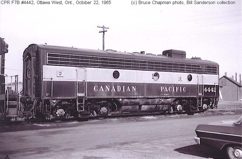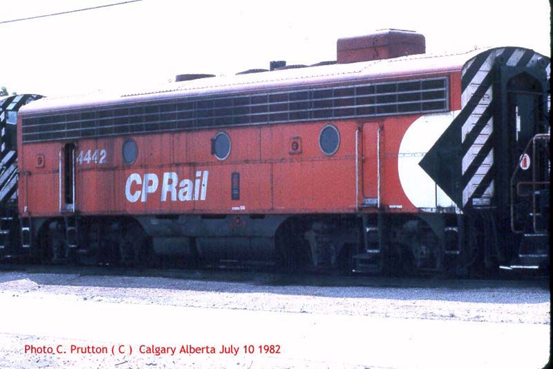 Other Photos (chronological) : 1. CP 1916, painted in the Maroon & Grey "Block" paint scheme. Photo by Bruce Chapman, date and location unknown. From the Mike McMahon collection; 2. CP 4442 at Ottawa, ON., painted in the Maroon & Grey "Block" paint scheme. Photo by Bruce Chapman, 1965. From the Bill Sanderson collection; 3. CP 4442 at Edmonton, AB., painted in the CP Rail Small Multimark paint scheme. Photo by Cor van Steenis, 1979; 4. CP 4442 at Calgary, AB., painted in the CP Rail Small Multimark paint scheme. Photo by Claude Prutton, 1982.