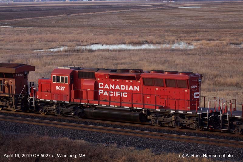 Other Photos (chronological) : 1. CP 5027 at Winnipeg, MB., painted in the Canadian Pacific paint scheme. Photo by A. Ross Harrison, 2019.