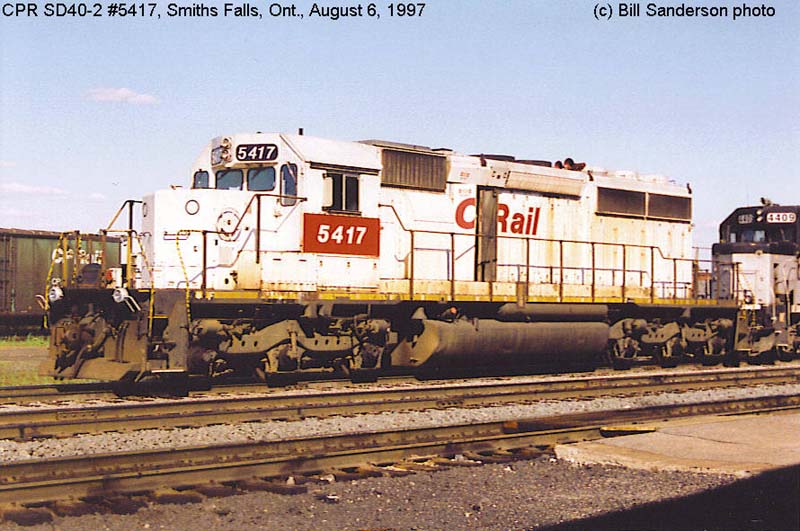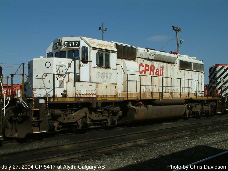 Other Photos (chronological) : 1. CP 672 at Franklin Park, IL., painted in the ex-KCS white paint scheme. Photo by John C. Benson, 1992. From the Gary Zuters collection; 2. CP 5417 at Smiths Falls, ON., painted in the ex-KCS white paint scheme. Photo by Bill Sanderson, 1997; 3. CP 5417 at Alyth, Calgary AB., painted in the ex-KCS white paint scheme. Photo by Chris Davidson, 2004.