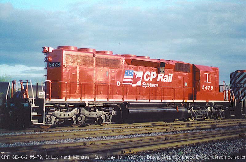 Other Photos (chronological) : 1. CP 3248 at Smiths Falls, ON., painted in the Ex-Norfolk Southern black paint scheme. Photo by Bill Sanderson, 1992; 2. CP 5479 at Montreal, QC., painted in the CP Rail Dual Flags paint scheme. Photo by Bruce Chapman, 1993. From the Bill Sanderson collection.