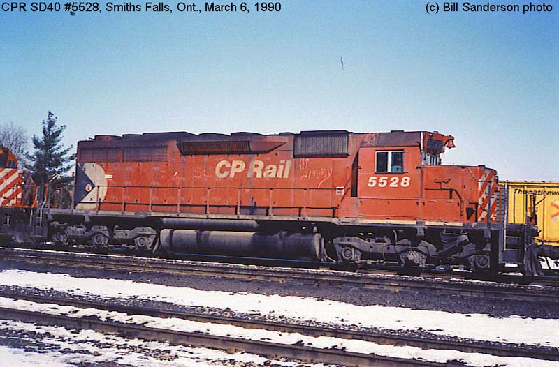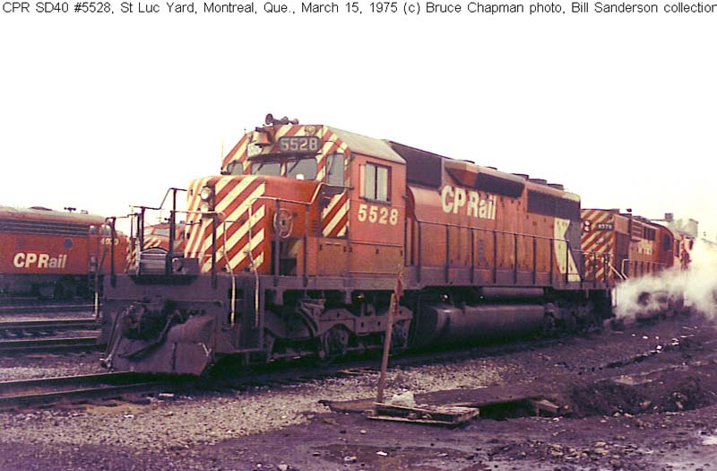 Other Photos (chronological) : 1. CP 5528, painted in the Maroon & Grey "Script" paint scheme. Photographer, date and location unknown. From the Bill Sanderson collection; 2. CP 5528 at Montreal, QC., painted in the CP Rail Large Multimark paint scheme. Photo by Bruce Chapman, 1975. From the Bill Sanderson collection; 3. CP 5528 at Toronto, ON., painted in the CP Rail Large Multimark paint scheme. Photo by Warren G. Opalk, 1979. From the Bill Sanderson collection; 4. CP 5528 at Smiths Falls, ON., painted in the CP Rail no-Multimark paint scheme. Photo by Bill Sanderson, 1992; 5. CP 5528 at Port Coquitlam, B.C., painted in the CP Rail no-Multimark paint scheme. Photo by Mark Forseille, 1996; 6. DM&E 6092 at Huron, SD., painted in the Ex-CP Rail no-Multimark paint scheme. Photo by Paul Wester, 2005. From the Bill Sanderson collection.