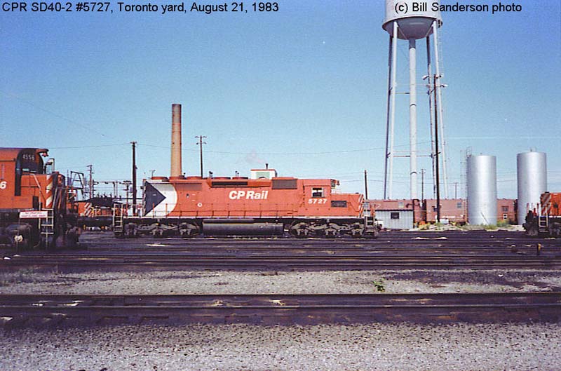 Other Photos (chronological) : 1. CP 5727 at Toronto, ON., painted in the CP Rail Large Multimark paint scheme. Photo by Bill Sanderson, 1983; 2. CP 5727 at Winnipeg, MB., painted in the CP Rail no-Multimark paint scheme. Photo by A. Ross Harrison, 2008; 3. CP 5727 at Winnipeg, MB., painted in the CP Rail no-Multimark paint scheme. Photo by A. Ross Harrison, 2010; 4. CP 5727 at WInnipeg, MB., painted in the CP Rail no-Multimark paint scheme. Photo by A. Ross Harrison, 2014.