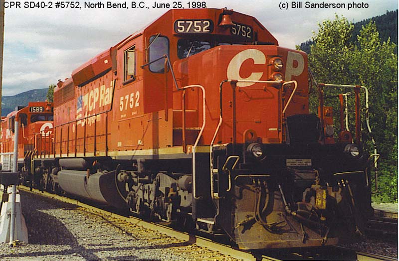 Other Photos (chronological) : 1. CP 5752 at Winnipeg, MB., painted in the CP Rail Large Multimark paint scheme. Photo by Bruce Chapman, 1977. From the Bill Sanderson collection; 2. CP 5752 at North Bend, B.C., painted in the CP Rail Dual Flags paint scheme. Photo by Bill Sanderson, 1998; 3. CP 5752 at Thunder Bay, ON., painted in the CP Rail Dual Flags paint scheme. Photo by Bill Sanderson, 1999; 4. NPR 5557 at Fordville, ND., painted in the Ex-CP Rail Dual Flags paint scheme. Photo by Tom Farrell, 2009. From the Bill Sanderson collection.