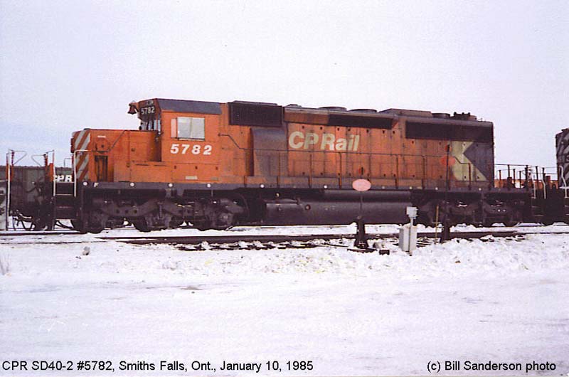 Other Photos (chronological) : 1. CP 5782 at Kamloops, B.C., painted in the CP Rail Small Multimark paint scheme. Photo by Bruce Chapman, 1990. From the Bill Sanderson collection; 2. CP 5782 at Toronto, ON., painted in the CP Rail Dual Flags paint scheme. Photo by Gary R. Zuters, 1995. From the Bill Sanderson collection; 3. CN 5391 at Capreol, ON., painted in the Ex-CP Rail Dual Flags paint scheme, lettered CN. Photo by Bill Sanderson, 2001.