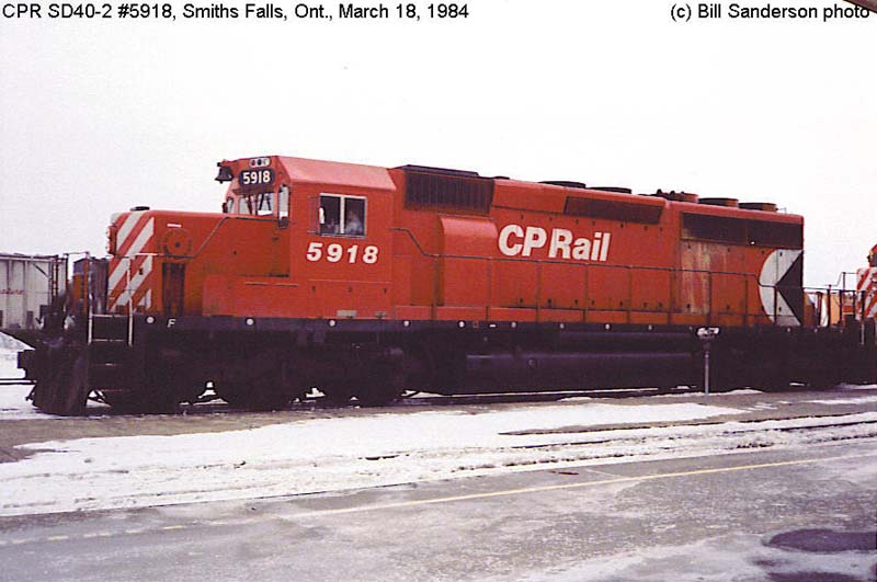 Other Photos (chronological) : 1. CP 5918 at Smiths Falls, ON., painted in the CP Rail Small Multimark paint scheme. Photo by Bill Sanderson, 1984.