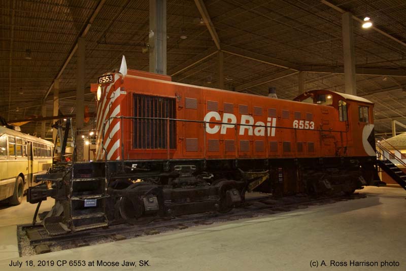 Other Photos (chronological) : 1. CP 6553 at Swift Current, SK., painted in the CP Rail Multimark paint scheme. Photo by Bruce Chapman, 1973. From the Bill Sanderson collection; 2. CP 6553 at Moose Jaw, SK., painted in the CP Rail Multimark paint scheme. Photo by Doug MacKenzie, 2007; 3. CP 6553 at Moose Jaw, SK., painted in the CP Rail Multimark paint scheme. Photo by A. Ross Harrison, 2019; 4. CP 6553 at Moose Jaw, SK., painted in the CP Rail Multimark paint scheme. Photo by A. Ross Harrison, 2019.