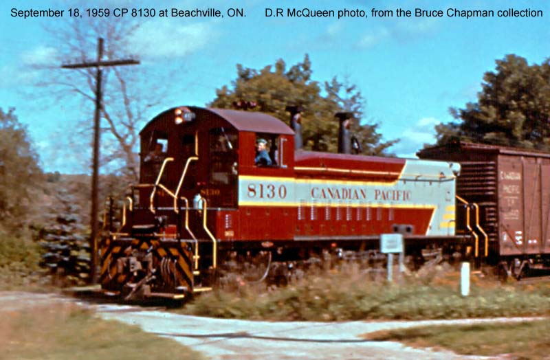 Other Photos (chronological) : 1. CP 8130 at Beachville, ON., painted in the Maroon & Grey "Block" paint scheme. Photo by D.R. McQueen, 1959. From the Ron Visockis collection; 2. CP 1275 at Moncton, NB., painted in the CP Rail paint scheme. Photo by George Parks, 1985. From the Bill Sanderson collection.