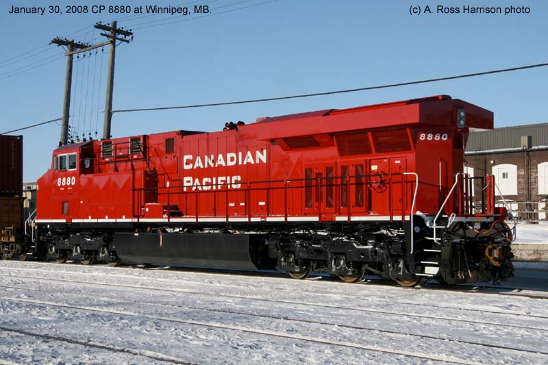 Other Photos (chronological) : 1. CP 8880 at Montreal, QC., painted in the Canadian Pacific paint scheme. Photo by Alex de Lery, 2008.
