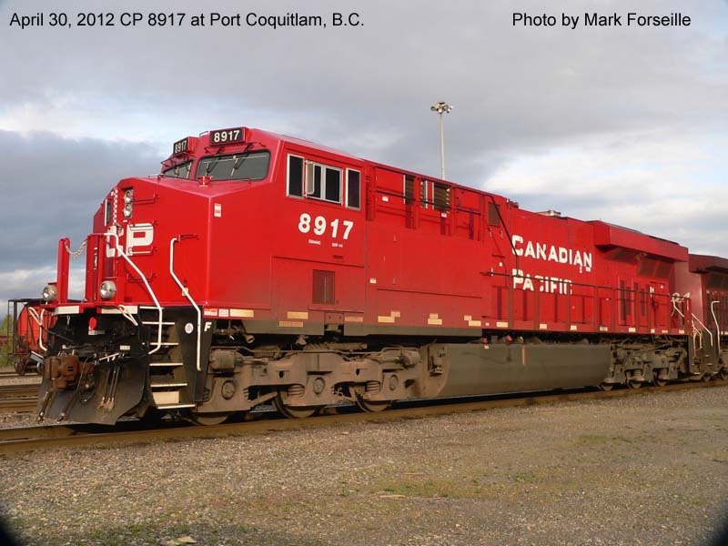 Other Photos (chronological) : 1. CP 8917 at WInnipeg, MB., painted in the Canadian Pacific paint scheme. Photo by A. Ross Harrison, 2012.