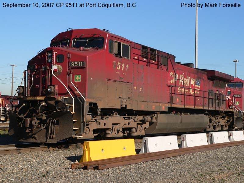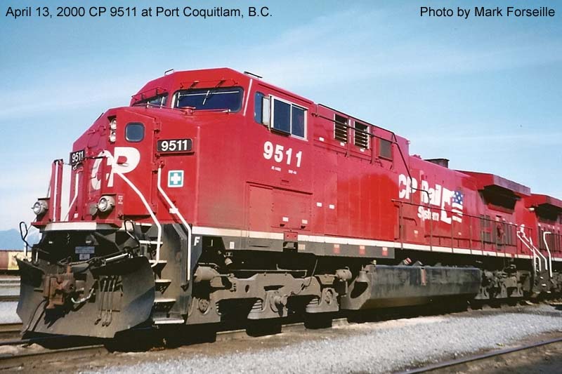Other Photos (chronological) : 1. CP 9511 at Revelstoke, B.C., painted in the CP Rail Dual Flags paint scheme. Photo by Bill Sanderson, 1996; 2. CP 9511 at Port Coquitlam, B.C., painted in the CP Rail Dual Flags paint scheme. Photo by Mark Forseille, 2000; 3. CP 9511 at Port Coquitlam, B.C., painted in the CP Rail Dual Flags paint scheme. Photo by Mark Forseille, 2006; 4. CP 9511 at Port Coquitlam, B.C., painted in the CP Rail Dual Flags paint scheme. Photo by Mark Forseille, 2010; 5. CP 9511 at Winnipeg, MB., painted in the CP Rail Dual Flags paint scheme. Photo by A. Ross Harrison, 2013; 6. CP 8038 at WInnipeg, MB., painted in the CPR Beaver II paint scheme. Photo by A. Ross Harrison, 2019.