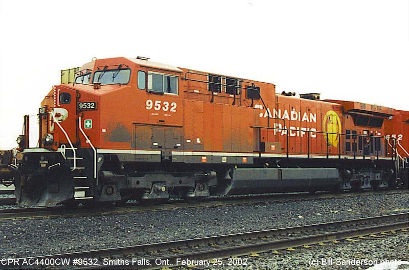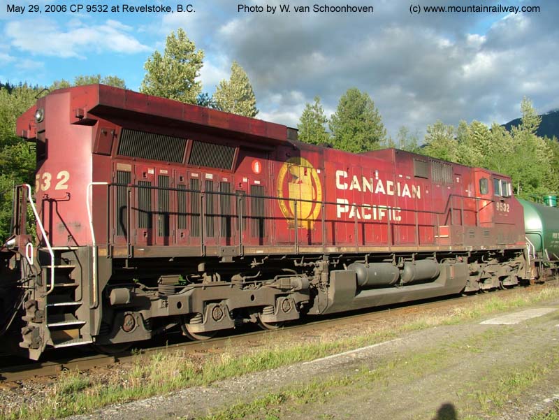 Other Photos (chronological) : 1. CP 9532 at Alyth, Calgary AB., painted in the CP Rail Dual Flags paint scheme. Photo by Bill Sanderson, 1996; 2. CP 9532 at Smiths Falls, ON., painted in the CPR Beaver paint scheme. Photo by Bill Sanderson, 2002; 3. CP 9532 at Revelstoke, B.C., rear side, painted in the CPR Beaver paint scheme. Photo by Wilco van Schoonhoven, 2006; 4. CP 9532 at Winnipeg, MB., painted in the CPR Beaver paint scheme. Photo by A. Ross Harrison, 2013; 5. CP 8007 at Coquitlam, B.C., painted in the CPR Beaver II paint scheme. Photo by Mark Forseille, 2018.