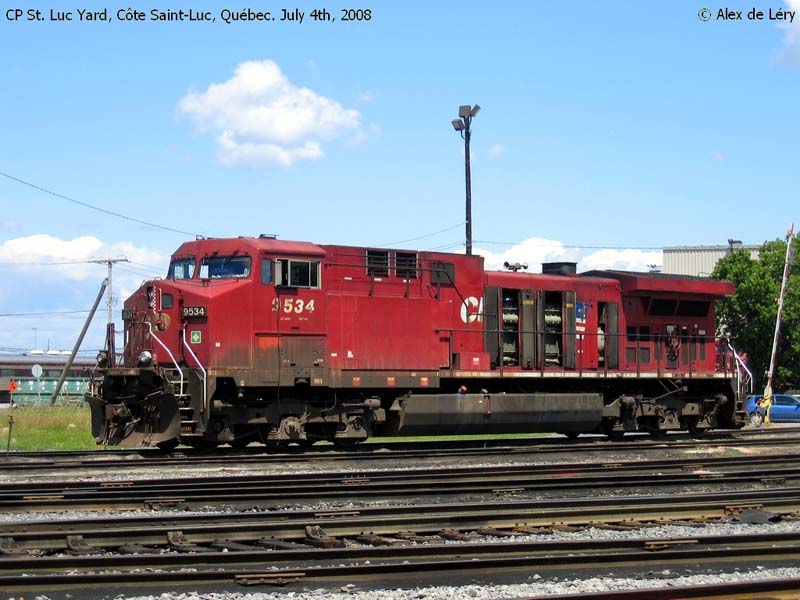 Other Photos (chronological) : 1. CP 9534 at Port Coquitlam, B.C., painted in the CP Rail Dual Flags paint scheme. Photo by Mark Forseille, 2005; 2. CP 9534 at Montreal, QC., painted in the CP Rail Dual Flags paint scheme. Photo by Alex de Lery, 2008; 3. CP 9534 at Winnipeg, MB., painted in the CP Rail Dual Flags paint scheme. Photo by A. Ross Harrison, 2010; 4. CP 9534 at Winnipeg, MB., painted in the CP Rail Dual Flags paint scheme. Photo by A. Ross Harrison, 2011.