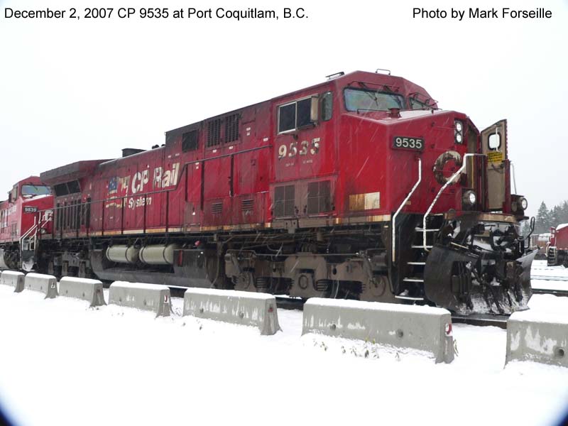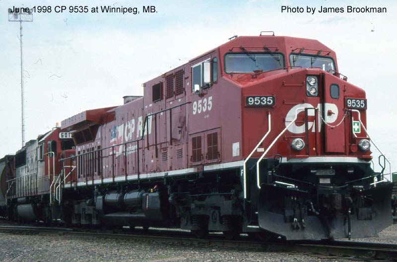 Other Photos (chronological) : 1. CP 9535 at Winnipeg, MB., painted in the CP Rail Dual Flags paint scheme. Photo by James Brookman, 1998; 2. CP 9535 at Port Coquitlam, B.C., painted in the CP Rail Dual Flags paint scheme. Photo by Mark Forseille, 2007; 3. CP 9535 at Winnipeg, MB., painted in the CP Rail Dual Flags paint scheme. Photo by A. Ross Harrison, 2013.