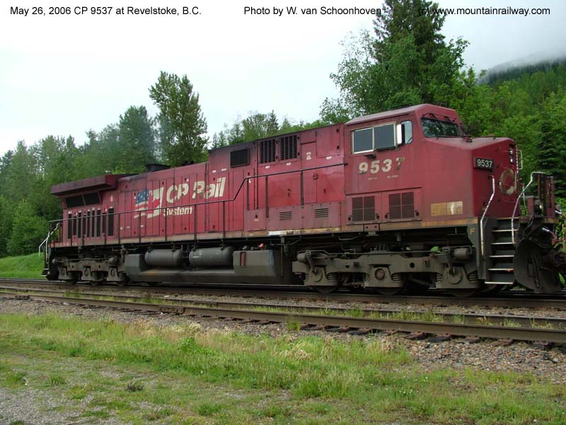 Other Photos (chronological) : 1. CP 9537 at Revelstoke, B.C., painted in the CP Rail Dual Flags paint scheme. Photo by Wilco van Schoonhoven, 2006; 2. CP 9537 at Winnipeg, MB., painted in the CP Rail Dual Flags paint scheme. Photo by A. Ross Harrison, 2017.