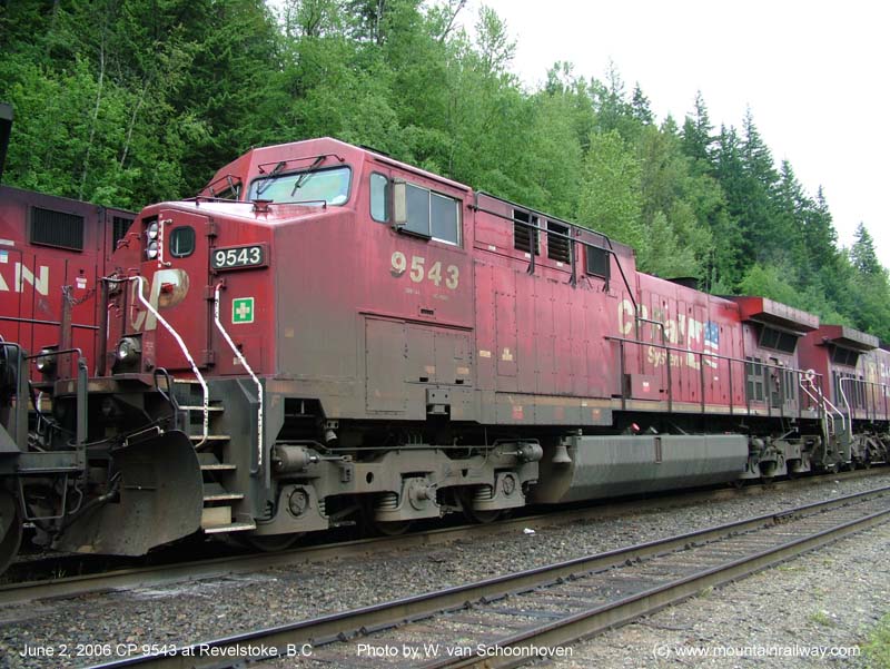 Other Photos (chronological) : 1. CP 9543 at Revelstoke, B.C., painted in the CP Rail Dual Flags paint scheme. Photo by Bill Sanderson, 1996; 2. CP 9543 at Port Coquitlam, B.C., painted in the CP Rail Dual Flags paint scheme. Photo by Mark Forseille, 1998; 3. CP 9543 at Revelstoke, B.C., painted in the CP Rail Dual Flags paint scheme. Photo by Wilco van Schoonhoven, 2006; 4. CP 9543 at Winnipeg, MB., painted in the CP Rail Dual Flags paint scheme. Photo by A. Ross Harrison, 2018.
