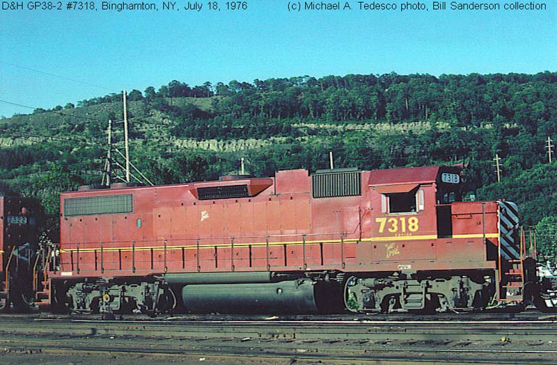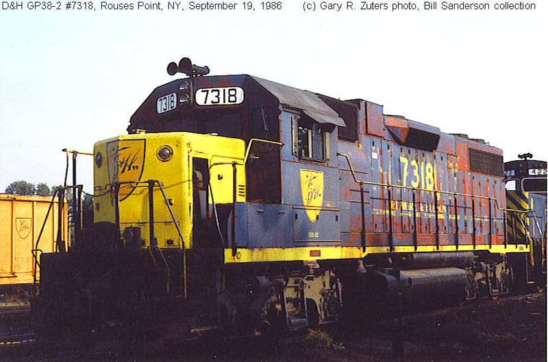Other Photos (chronological) : 1. D&H 7318 at Binghamton, NY., painted in the Ex-Lehigh Valley paint scheme. Photo by Michael A. Tedesco, 1976. From the Bill Sanderson collection; 2. D&H 7318 at Rouses Point, NY., painted in the D&H Blue/Yellow paint scheme. Photoby Gary R. Zuters, 1986. From the Bill Sanderson collection; 3. D&H 224 at Montreal, QC., painted in the Ex-GTI paint scheme. Photo by Bruce Chapman, 1993; 4. D&H 224 at Montreal, QC., painted in the Ex-GTI paint scheme. Photo by Bruce Chapman, 1993; 5. CP 7305 at Smiths Falls, ON., painted in the CP Rail Dual Flags paint scheme. Photo by Bill Sanderson, 2001.