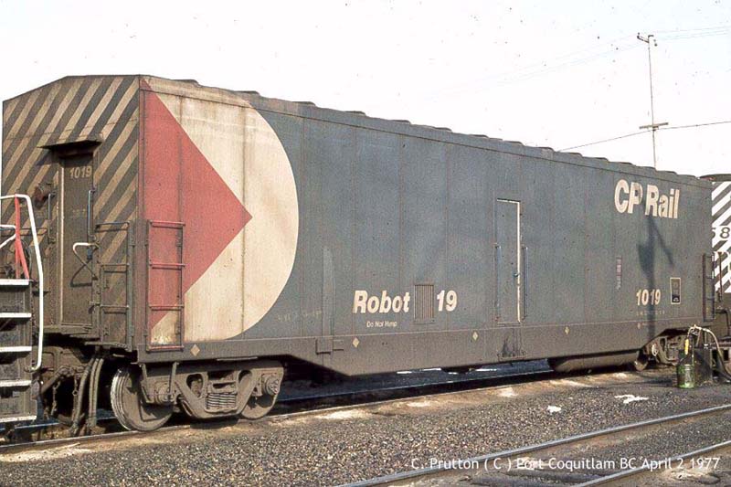 Other Photos (chronological) : 1. CP Robot-19 at Alyth, Calgary, AB., painted Blue, with Red/White Multimark. Photographer unknown, 1976. From the Bill Sanderson collection.