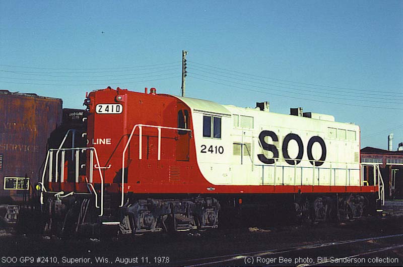 Other Photos (chronological) : 1. SOO 2410, painted in the SOO Red/White paint scheme. Photo by T. Wilson, 1985. From the E.D. Motis collection.